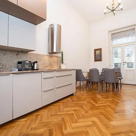 Apartament posiada pełnowymiarową kuchnię, gdzie dla wygodnego pobytu przewidziano piekarnik i zmywarkę do naczyń. Apartament jest położony mniej niż 5 min piechotą od przystanku autobusowego Museum i kilka kroków od stacji metra Muzeum.